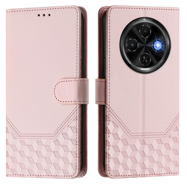 Funda de Cuero Rfid con Relieve en Panal para Tecno Spark 30C (Rosa)