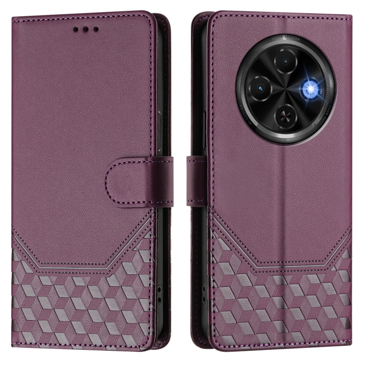 Funda de Cuero Rfid con Relieve en Panal para Tecno Spark 30C (Violeta)