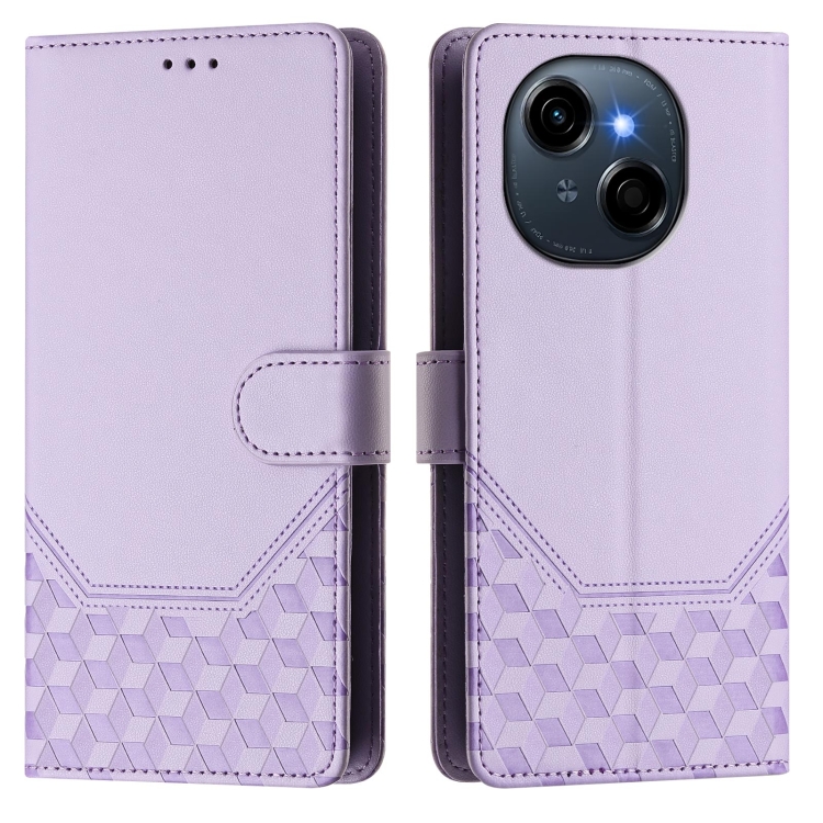 Funda de Cuero Rfid con Relieve en Panal para Tecno Spark Go 1/Spark Go 2025 (Morado Claro)
