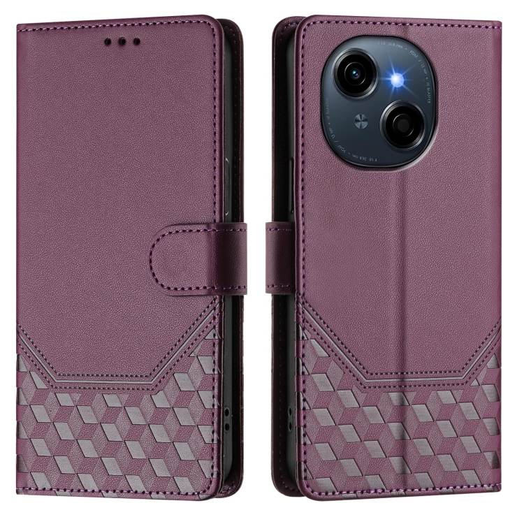 Funda de Cuero Rfid con Relieve en Panal para Tecno Spark Go 1/Spark Go 2025 (Violeta)