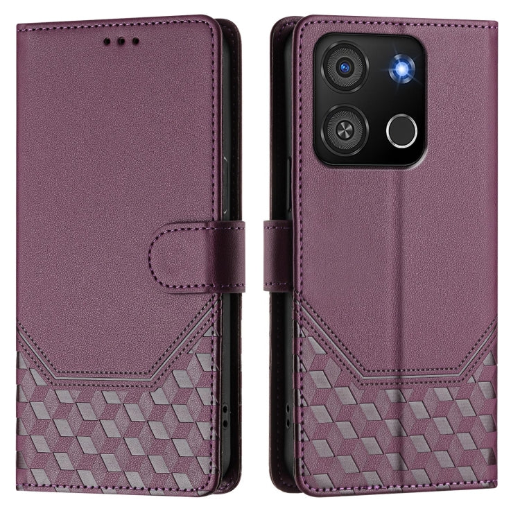 Funda de Cuero Rfid con Relieve en Panal para Teléfono Itel A05S (Violeta)