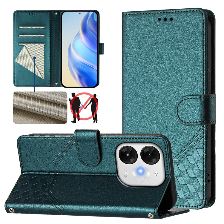 Funda de Cuero Rfid con Relieve en Panal para Teléfono Itel A80 4G (Verde Pavo Real)
