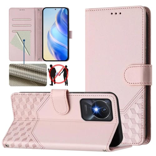 Funda de Cuero Rfid con Relieve En Panal para Vivo Y02A 4G / Y02 4G / Y11 2023 / Y02T (Rosa)