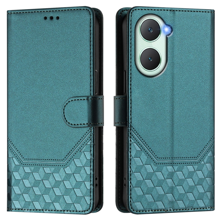 Funda de Cuero Rfid con Relieve En Panal para Vivo Y03 4G Global / Y18 4G (Verde Pavo Real)