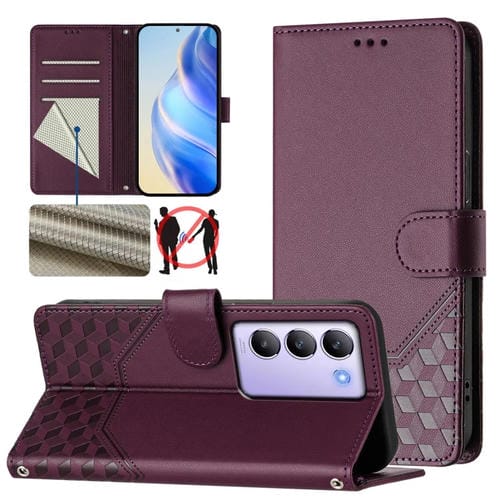 Funda de Cuero Rfid con Relieve En Panal para Vivo Y100 Idn/T3 5G Idn (Violeta)