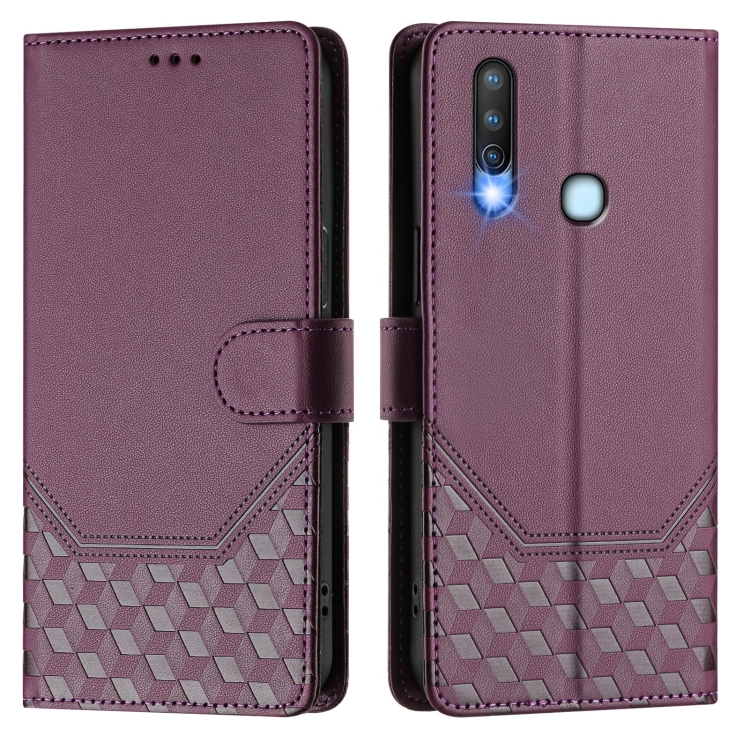 Funda de Cuero Rfid con Relieve En Panal para Vivo Y17/Y15/Y12/Y11 (Violeta)