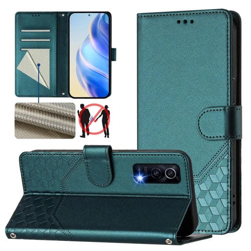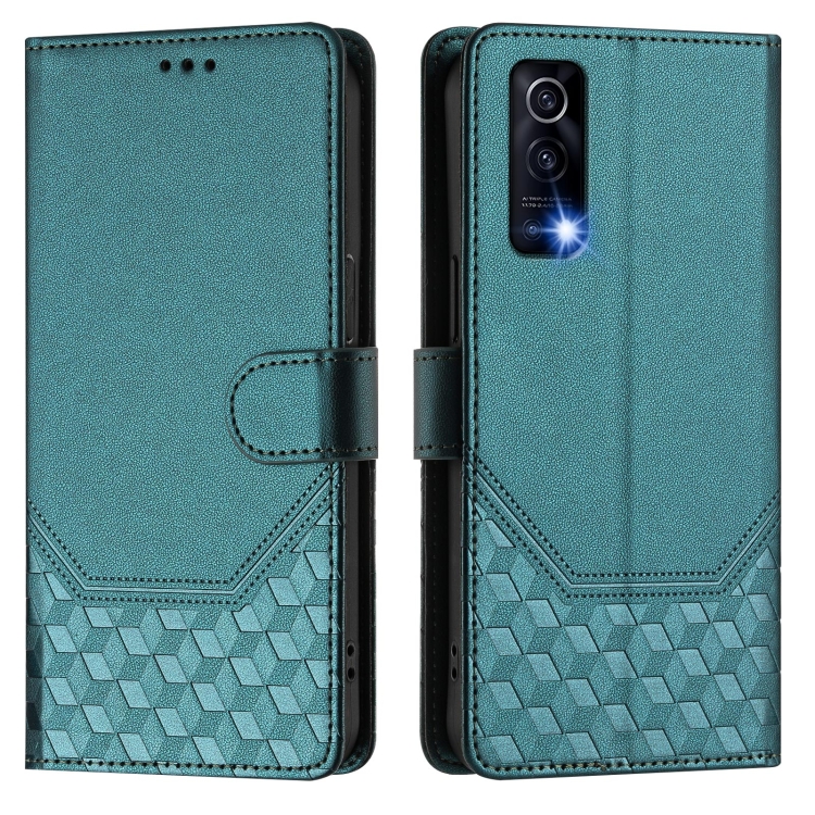 Funda de Cuero Rfid con Relieve En Panal para Vivo Y72 5G/Iqoo Z3 (Verde Pavo Real)