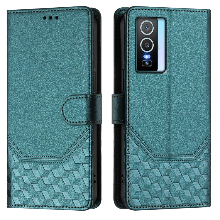 Funda de Cuero Rfid con Relieve En Panal para Vivo Y76 5G (Verde Pavo Real)