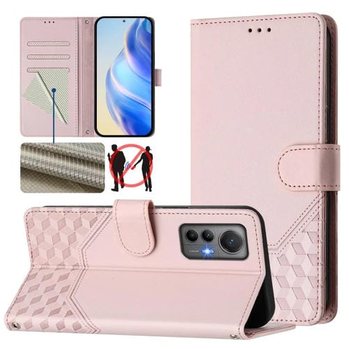 Funda de Cuero Rfid con Relieve En Panal para Xiaomi 12 Lite (Rosa)