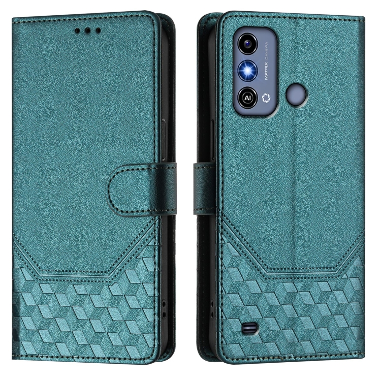 Funda de Cuero RFID con Relieve en Panal para ZTE Blade A53/A53+ (Verde Pavo Real)
