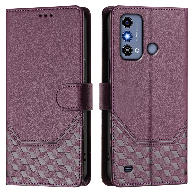 Funda de Cuero Rfid Relieve Panal para ZTE Blade A53/A53+ (Violeta)