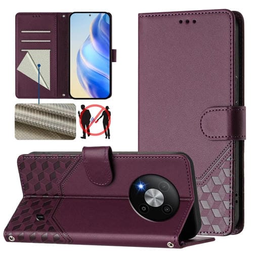 Funda de Cuero Rfid con Relieve en Panal para ZTE Blade A73 5G (Violeta)