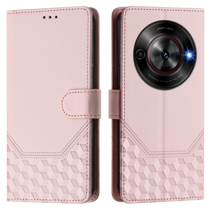 Funda Cuero Rfid con Relieve en Panal para ZTE Blade A75 5G (Rosa)