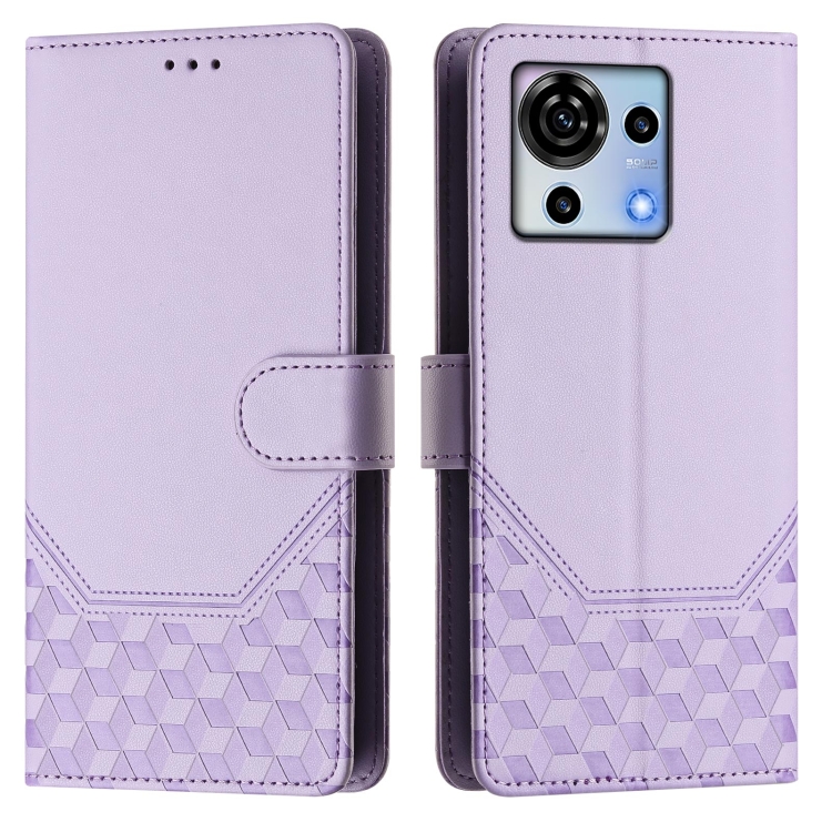 Funda de Cuero Rfid con Relieve en Panal para ZTE Blade V50 Vita (Morado Claro)