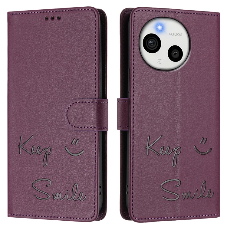 Funda de Cuero Rfid Smile Embossing para Sharp Aquos Sense9 (Violeta)