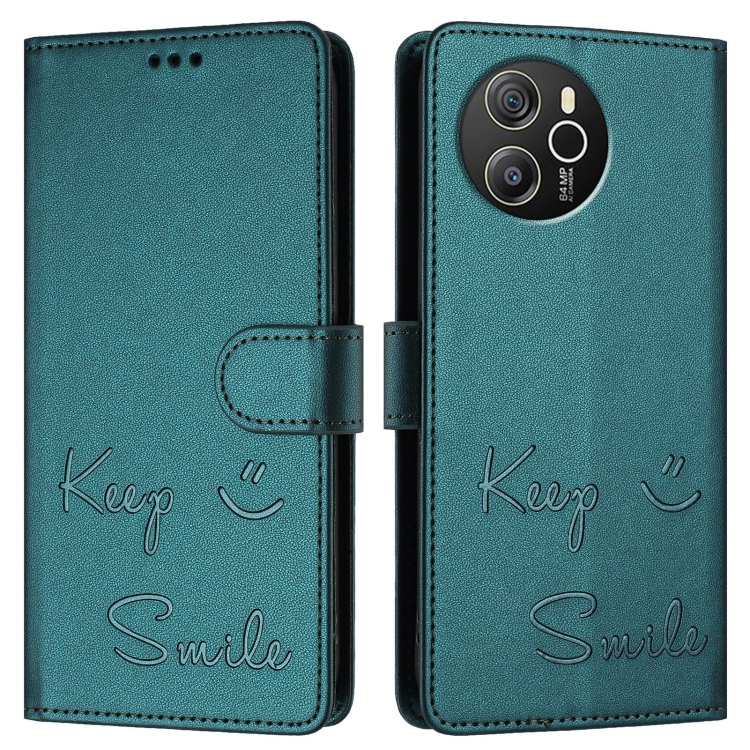 Funda de Cuero Rfid con Relieve Sonriente para BlackView Shark 8 (Verde Pavo Real)
