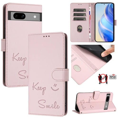 Funda de Cuero Rfid para Google Pixel 7A con Relieve Sonriente (Rosa)