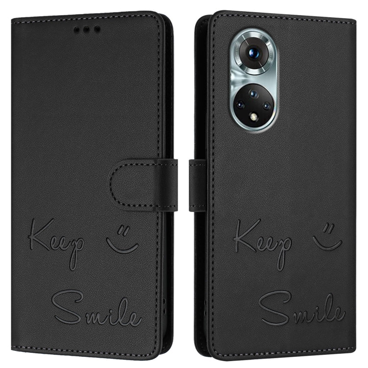 Funda de Cuero Rfid con Relieve Sonriente para Huawei Nova 9 Pro (Negra)