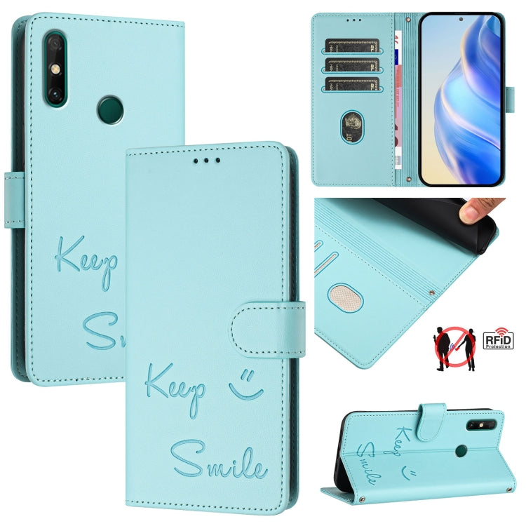 Funda de Cuero Rfid con Relieve Sonriente para Huawei P Smart 2021 4G (Verde Menta)