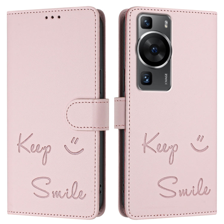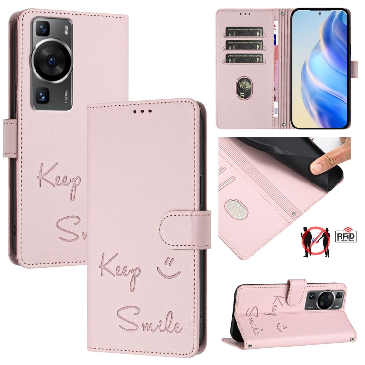 Funda de Cuero Rfid con Relieve Sonriente para Huawei P60/P60 Pro (Rosa)