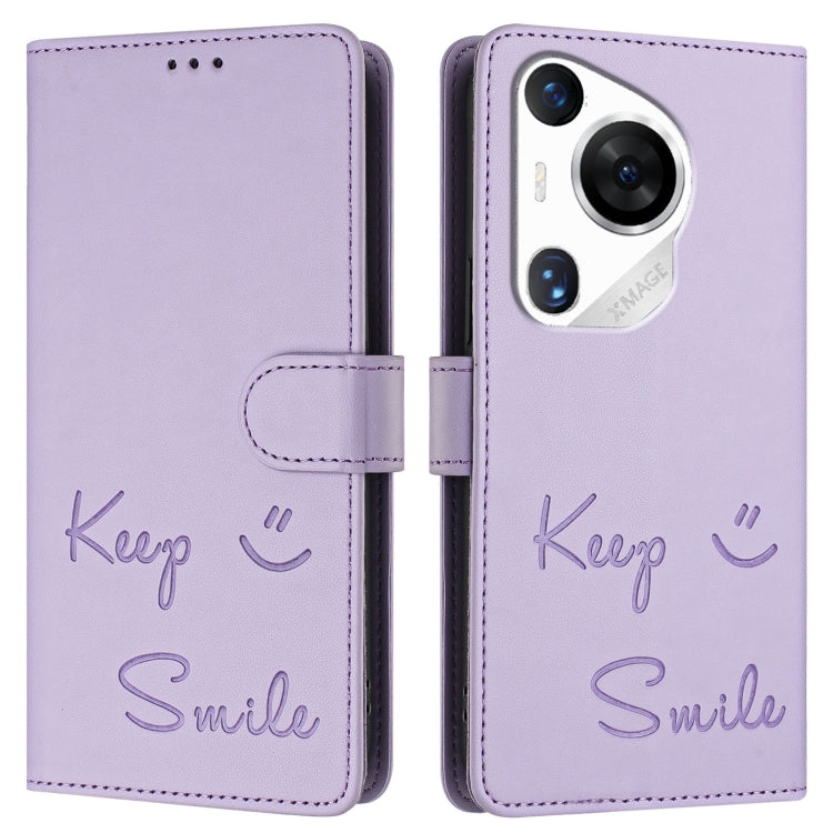 Funda de Cuero Rfid con Relieve Sonriente para Huawei Pura 70 Pro (Morado Claro)