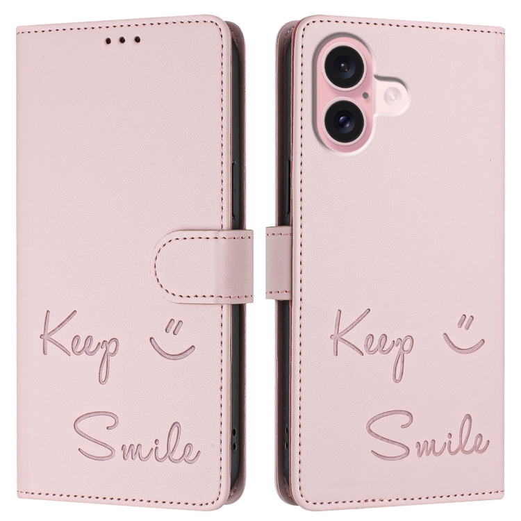 Funda de Cuero Rfid con Relieve Sonriente para iPhone 16 (Rosa)
