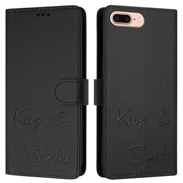 Funda de Cuero Rfid con Relieve Sonriente para iPhone 8 Plus/7 Plus (Negra)