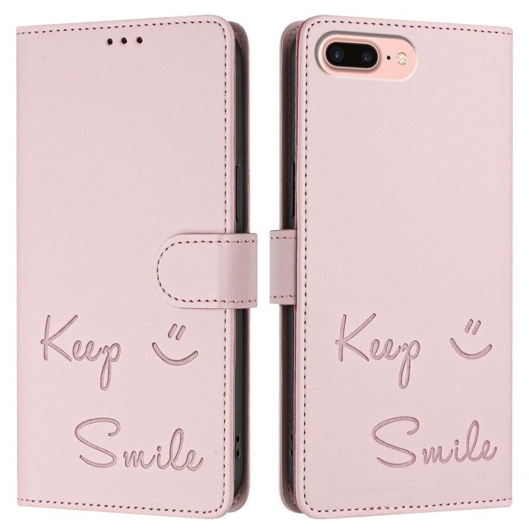 Funda de Cuero Rfid con Relieve Sonriente para iPhone 8 Plus/7 Plus (Rosa)