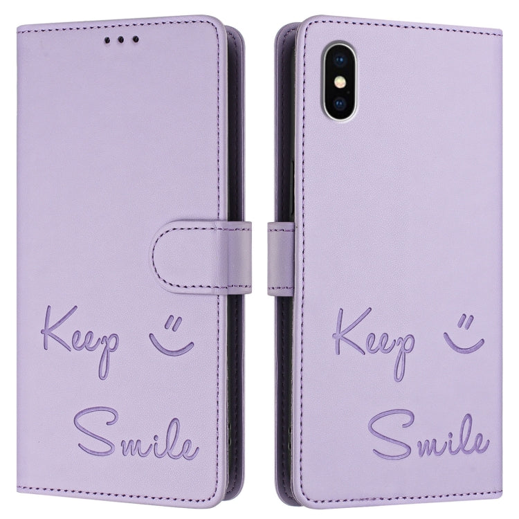 Funda de Cuero Rfid para iPhone X/Xs con Relieve Sonriente (Morado Claro)