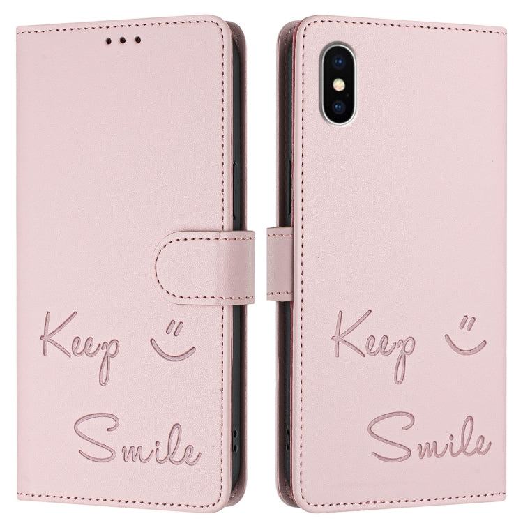 Funda de Cuero Rfid con Relieve Sonriente para iPhone X/Xs (Rosa)