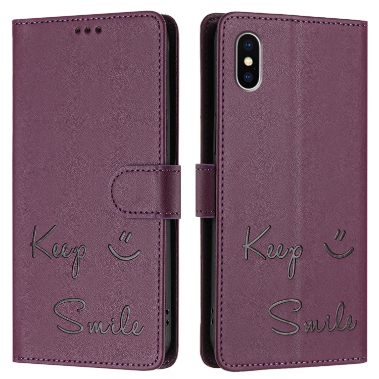 Funda de Cuero Rfid para iPhone X/Xs con Relieve Sonriente (Violeta)