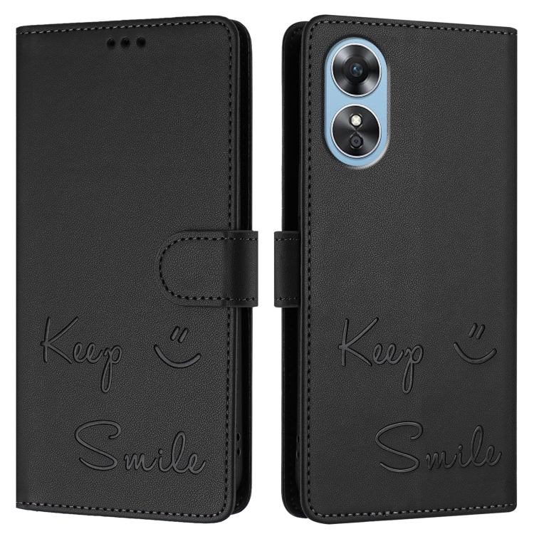 Funda de Cuero Rfid con Relieve Sonriente para Oppo A17 4G Global/A17K (Negra)
