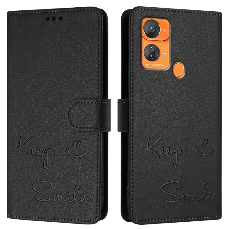 Funda Cuero Rfid con Relieve Sonriente para Oukitel C33 (Negra)