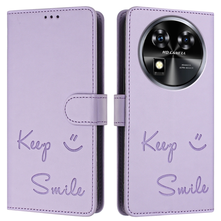 Funda de Cuero Rfid con Relieve Sonriente para Oukitel C37 (Morado Claro)