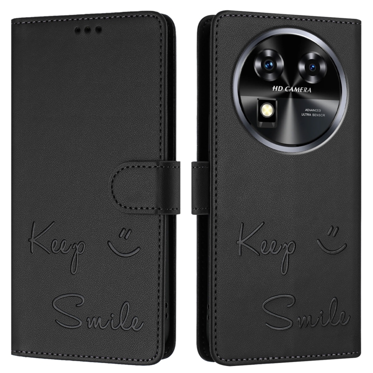 Funda de Cuero Rfid con Relieve Sonriente para Oukitel C37 (Negra)
