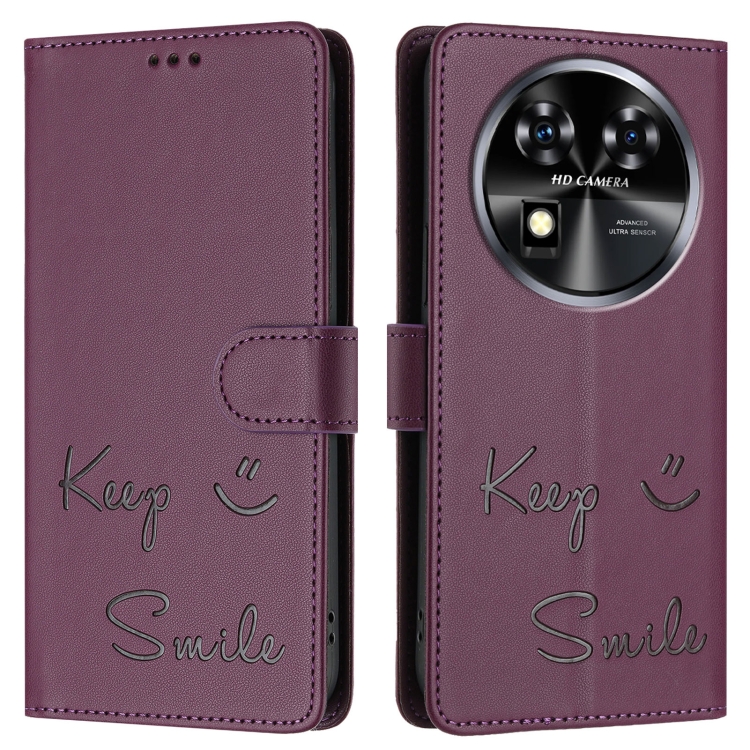 Funda de Cuero Rfid con Relieve Sonriente para Oukitel C37 (Violeta)