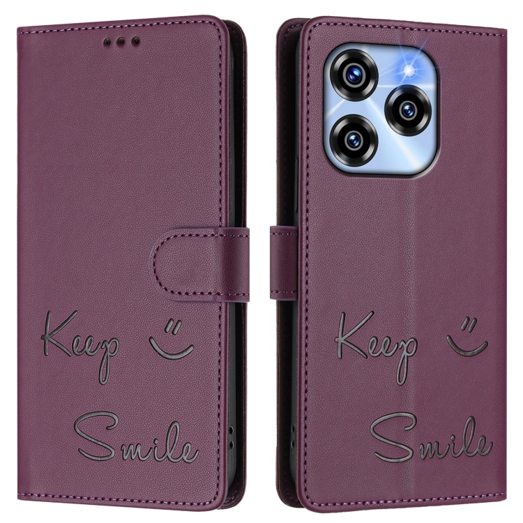 Funda de Cuero Rfid para Oukitel C50 con Relieve Sonriente (Violeta)