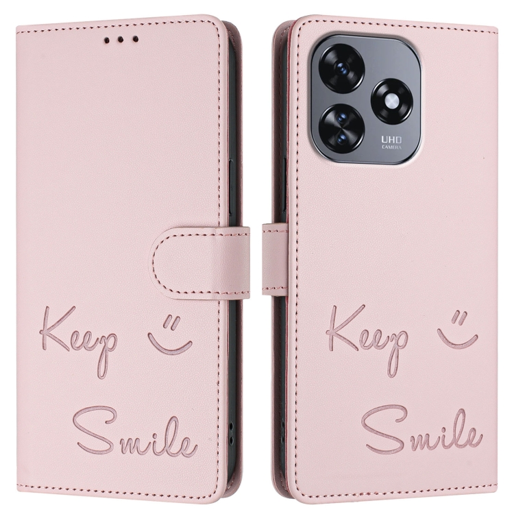 Funda de Cuero Rfid para Oukitel C51 con Relieve Sonriente (Rosa)