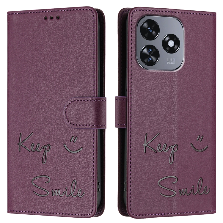 Funda de Cuero Rfid con Relieve Sonriente para Oukitel C51 (Violeta)