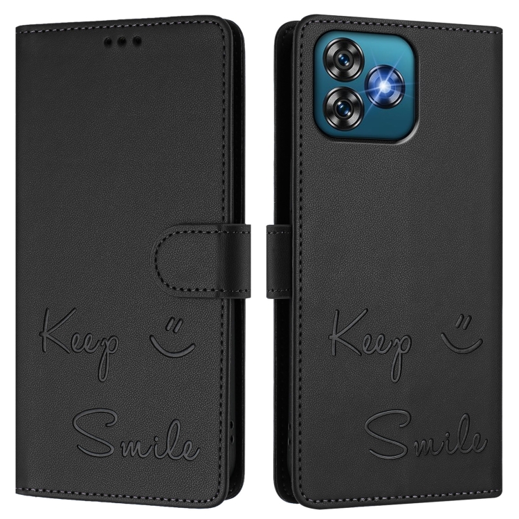 Funda de Cuero Rfid con Relieve Sonriente para Oukitel C53 (Negra)