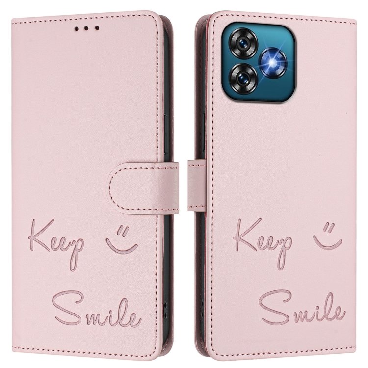 Funda de Cuero Rfid con Relieve Sonriente para Oukitel C53 (Rosa)