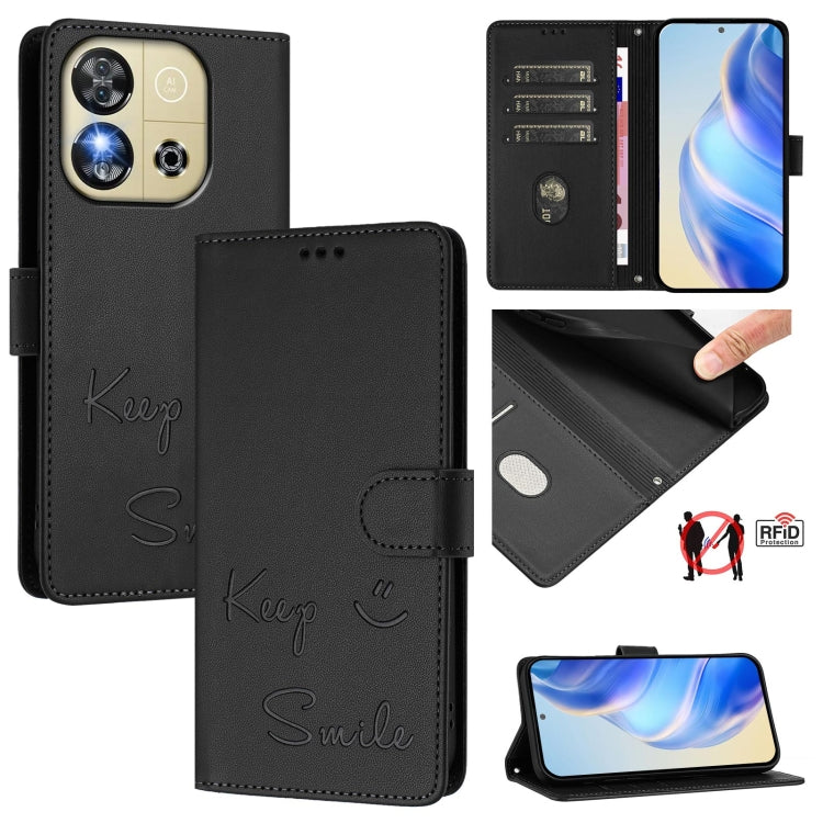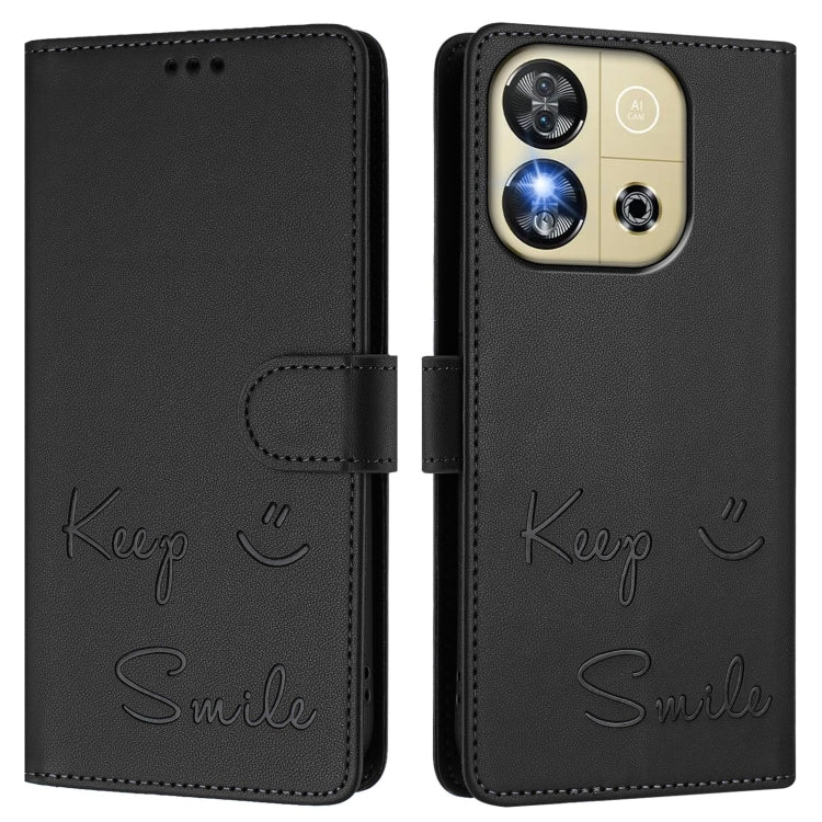 Funda de Cuero Rfid con Relieve Sonriente para Oukitel C57S (Negra)