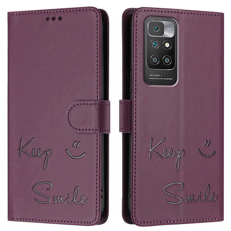 Funda de Cuero Rfid con Relieve Sonriente para Redmi 10 / Redmi 10 2022 (Violeta)