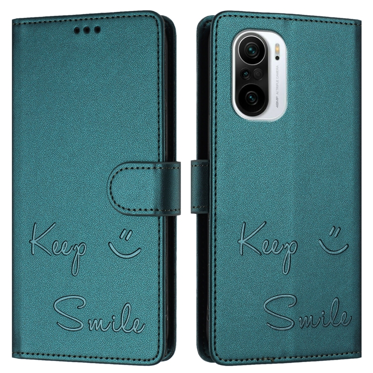 Funda de Cuero Rfid con Relieve Sonriente para Redmi K40/K40 Pro (Verde Pavo Real)