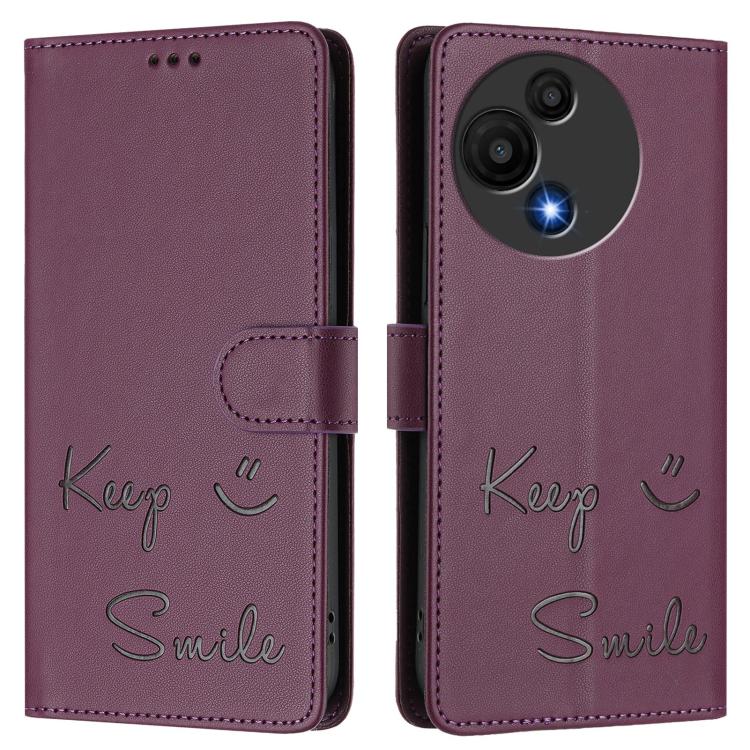 Funda de cuero RFID con relieve sonriente para TCL 605/60 SE (violeta)