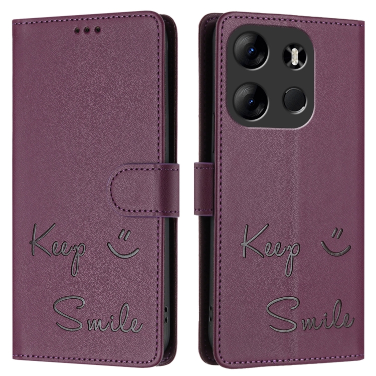 Funda de Cuero Rfid con Relieve Sonriente para Tecno Pop 7/Pop 7 Pro (Violeta)