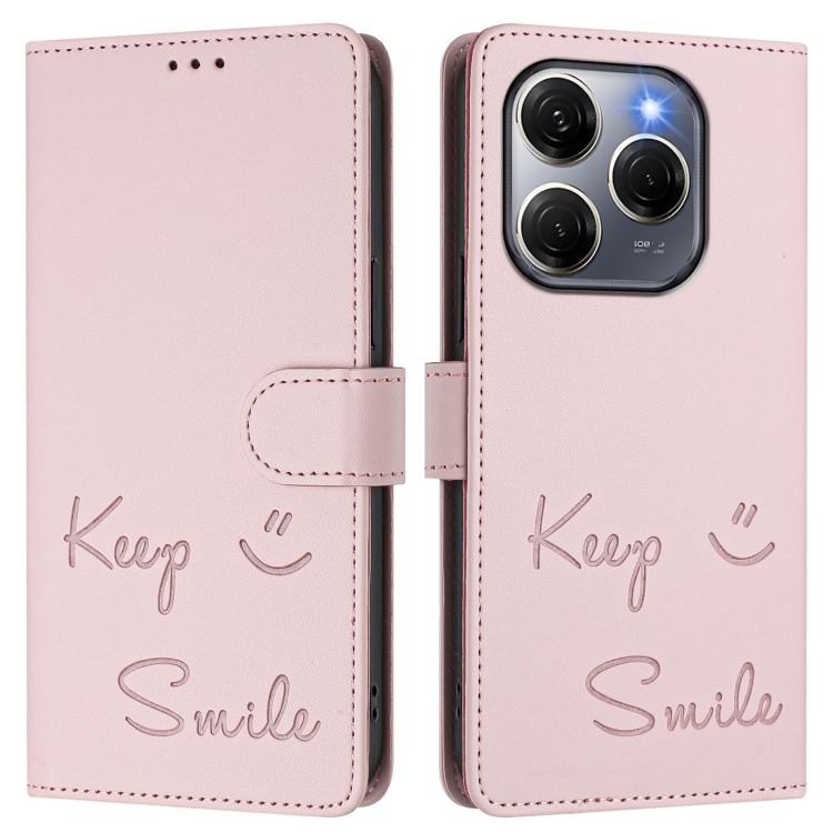 Funda de Cuero Rfid con Relieve Sonriente para Tecno Spark 20 Pro 5G (Rosa)