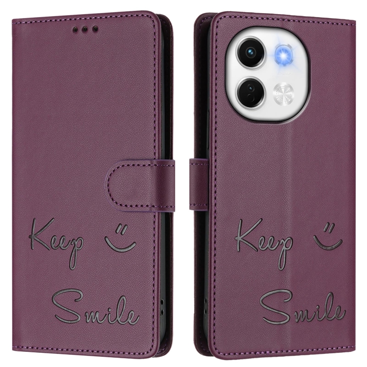 Funda de Cuero Rfid con Relieve Sonriente para Tecno Spark 30 5G (Violeta)