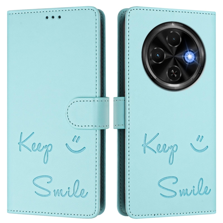 Funda Cuero Rfid con Relieve Sonriente para Tecno Spark 30C (Verde Menta)