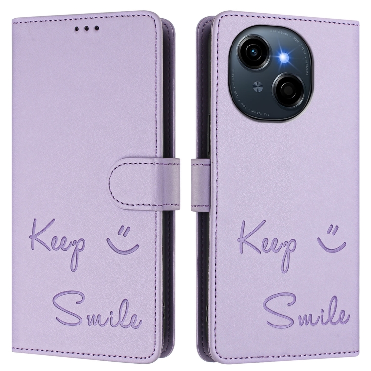 Funda de Cuero Rfid con Relieve Sonriente para Tecno Spark Go 1/Go 2025 (Morado Claro)